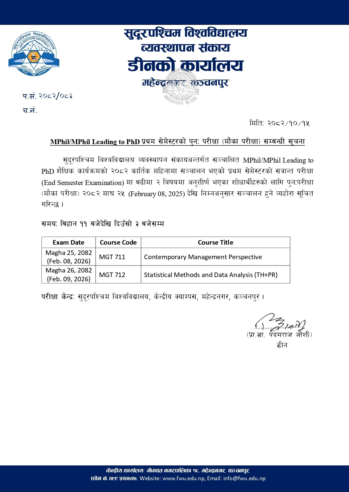 MPhil/MPhil Leading to PhD Re-exam Routine