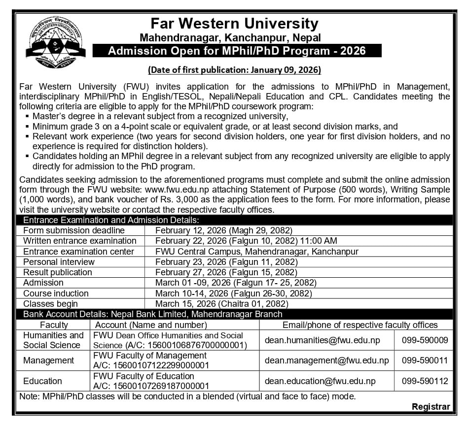 MPhil and MPhil leading to PhD Exam Form Fill-up Notice